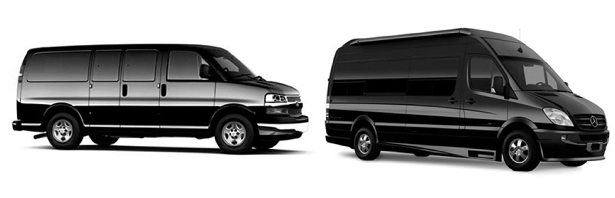For groups of up to 14 passengers, we offer Ford E-350s and Mercedes Sprinters for comfort and efficiency. This is a great option for airport transfers with luggage and may be more economical for larger groups.